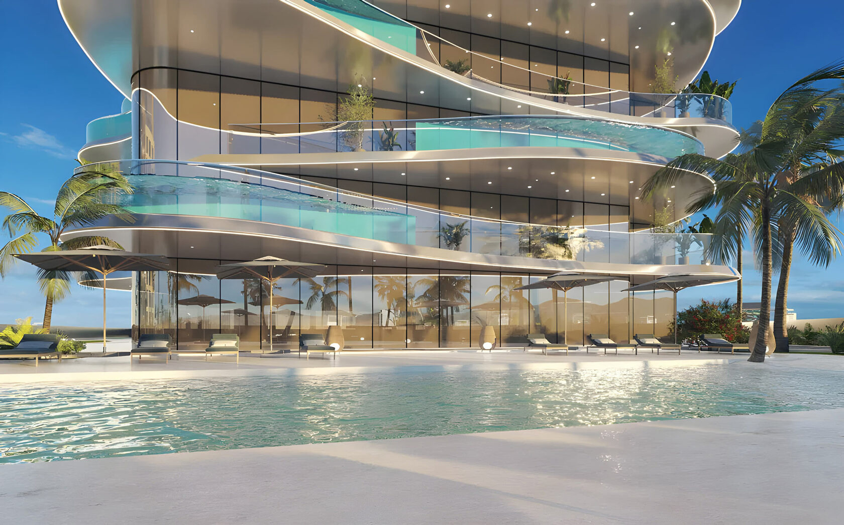 Triangle), Dubai with 1, 2, 3 & 4 bedroom apartments with private pools. This high-rise